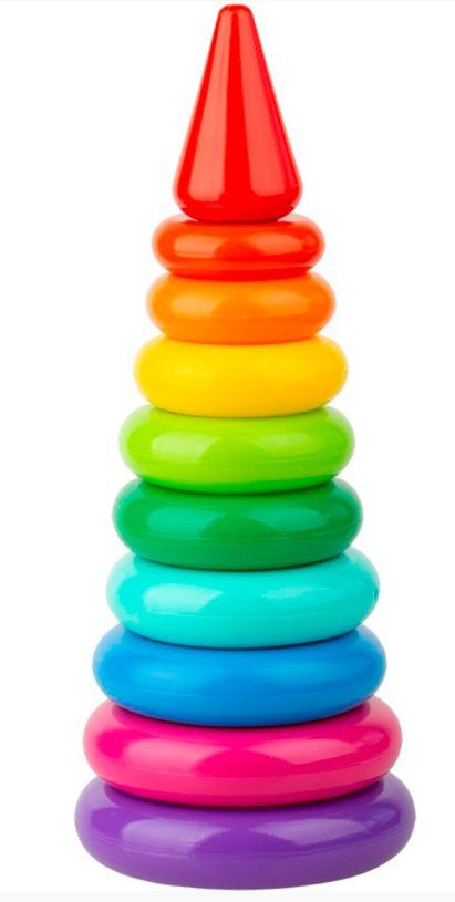 Игра Пирамида 30см– пластмассовая игрушка состоит из стержня, 9 колец разного цвета и наконечника ввиде конуса, d нижнего кольца 12 см высота 30 см. Игрушка развивает моторику, координацию, логику воображение. Знакомит ребёнка с цветами, формами.