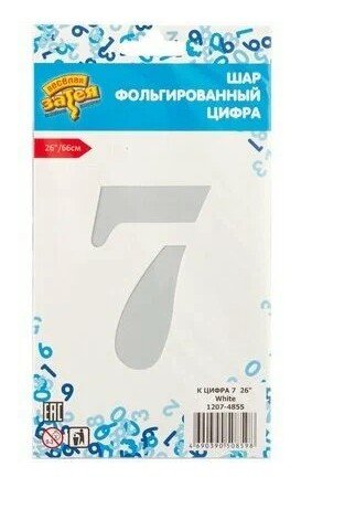 Шар фольгированный "Цифра 7" 26/66см Белый 1207-4855