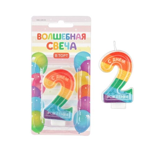 Свеча цифра с цветным нанесением 2 "С Днем рождения", 4,3 х 7.2 см 7501427