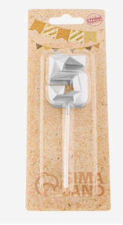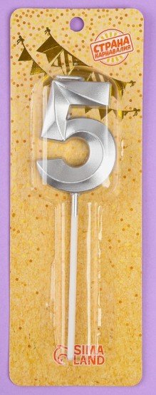 Свеча в торт на шпажке «Алмаз», цифра 5, серебряная, 5×2.6 см 9338106