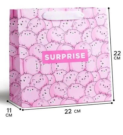 Пакет подарочный ламинированный квадратный, упаковка, Surprise, 22×22×11 см 5226244
